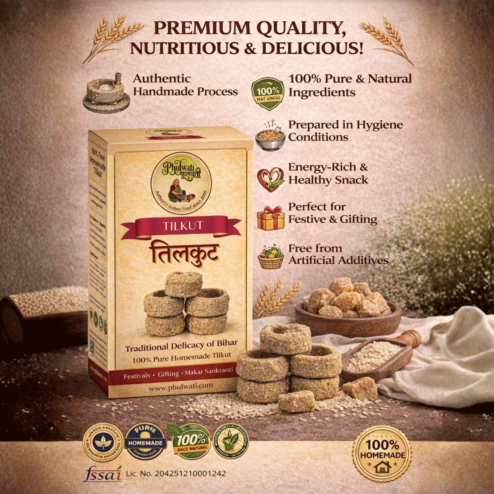 • Authentic Bihari Tilkut – Traditional winter sweet from Bihar, prepared using age-old homemade methods for original taste and crunch
