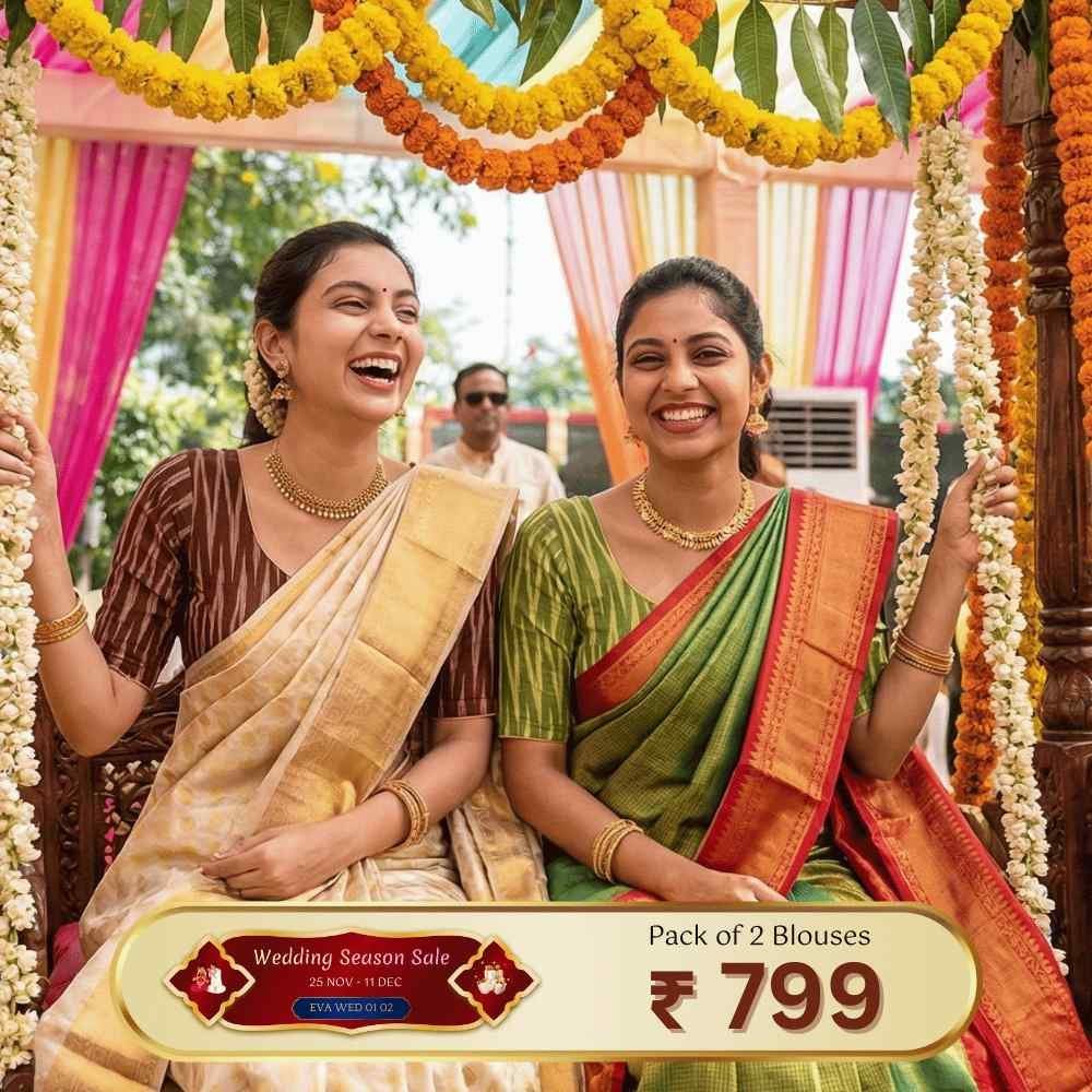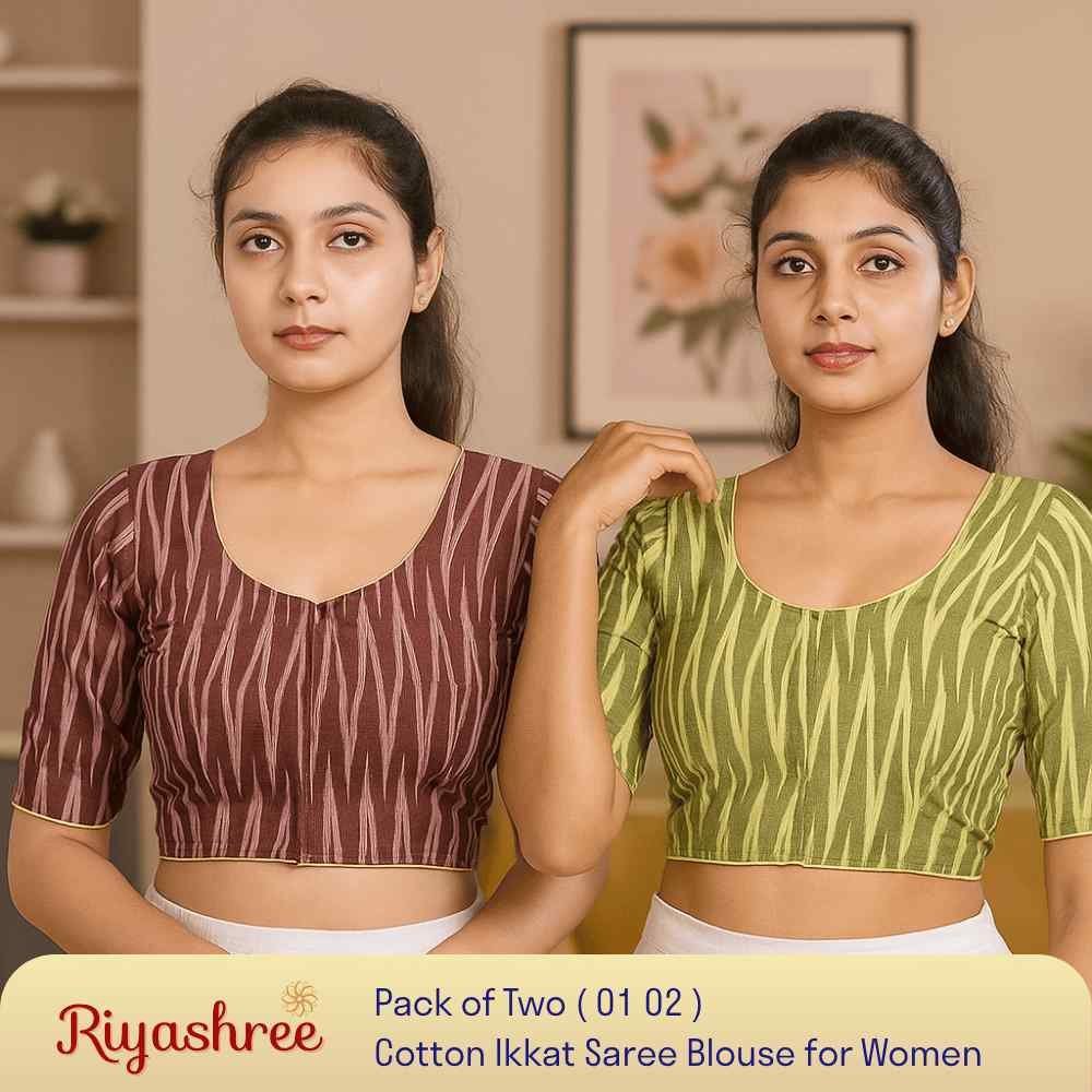 Riyashree Women’s Ikkat Cotton Ready Made Saree Blouse – Pack of 2 | Wedding Season Sale – 01 02