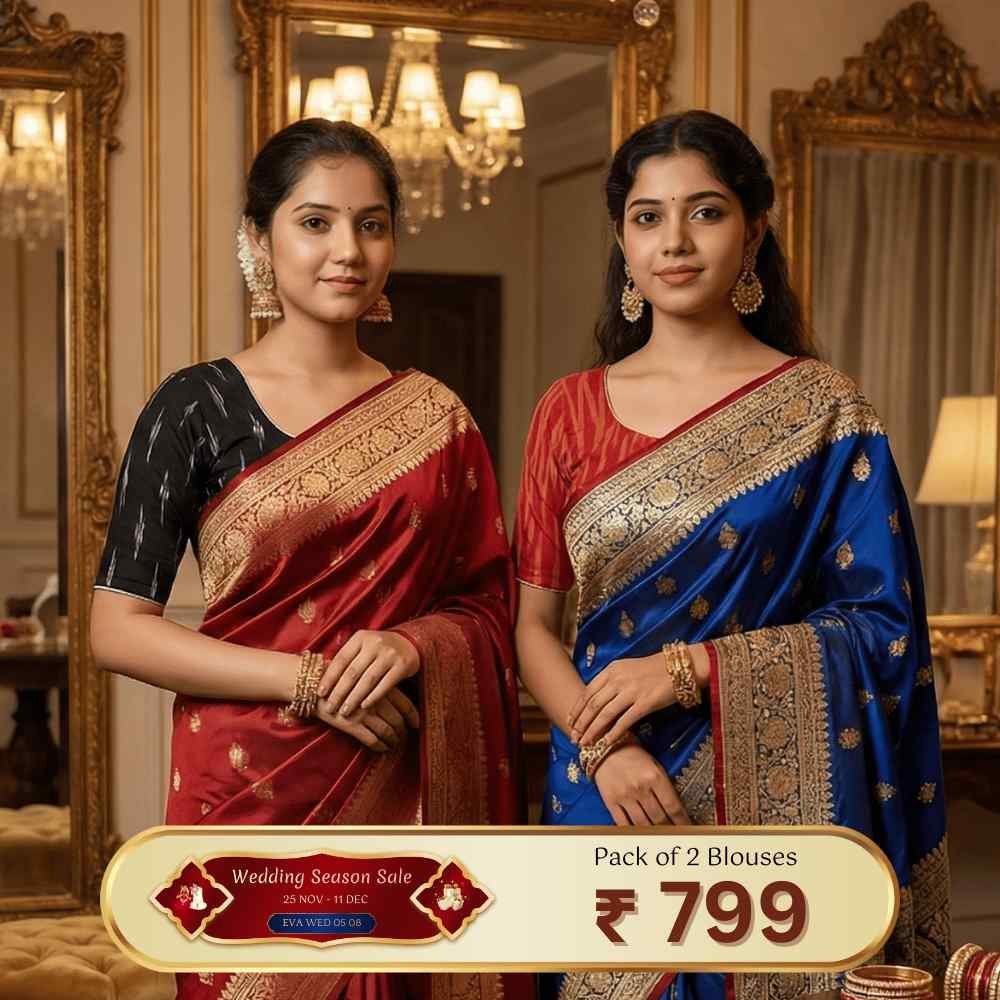 Riyashree Women’s Ikkat Cotton Ready Made Saree Blouse – Pack of 2 | Wedding Season Sale – 05 08
